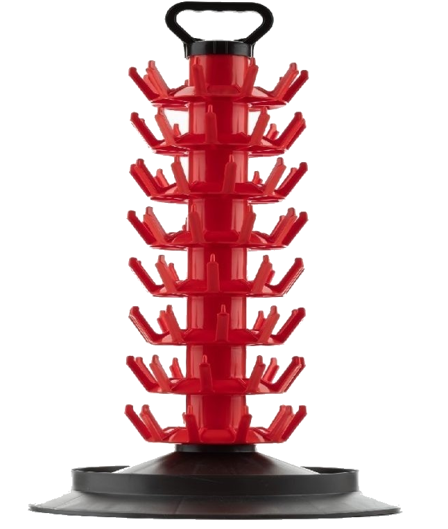 Un sistem de uscare al sticlelor foarte util pentru a depozita sticlele de bere sau vin pana se usuca. Se impiedica astfel aglomerarea spatiului de lucru dupa spalarea si sterilizarea sticlelor. Folosind acest suport, sticlele se vor usca mai rapid in interior sau in jurul dopului.