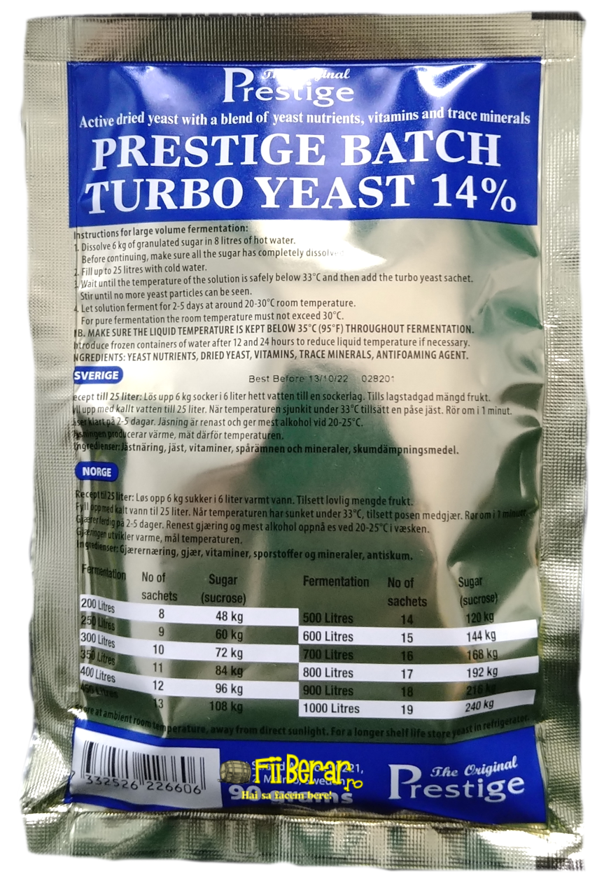Pentru loturi mai mari - pana la 1000 de litri - aduagati zahar si numar de plicuri conform tabelului de pe plic.