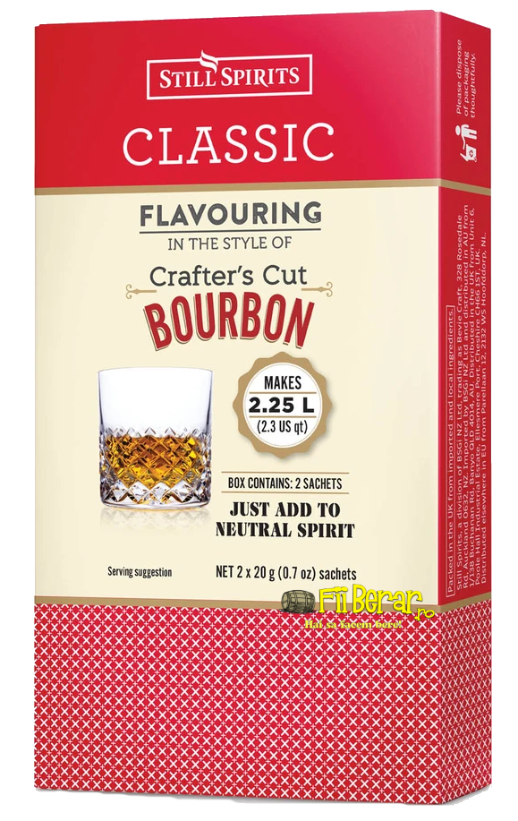Adaugati continutul unui plic la 1,125 litri alcool 40%. Clatiti plicul cu alcool pentru aroma ramasa.